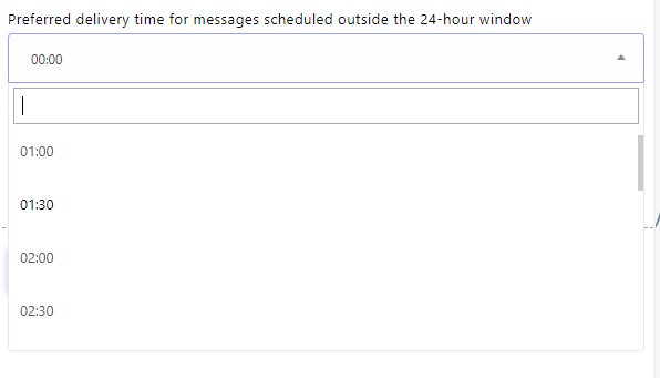 4. To determine the delivery timing of your series messages, use the `Preferred delivery time for messages scheduled outside the 24-hour window` field. You can choose from preset times or manually input your preferred delivery time. To ensure that the daily message is delivered at a designated time of day. This is employed to accommodate the desired time of day for sending the message.