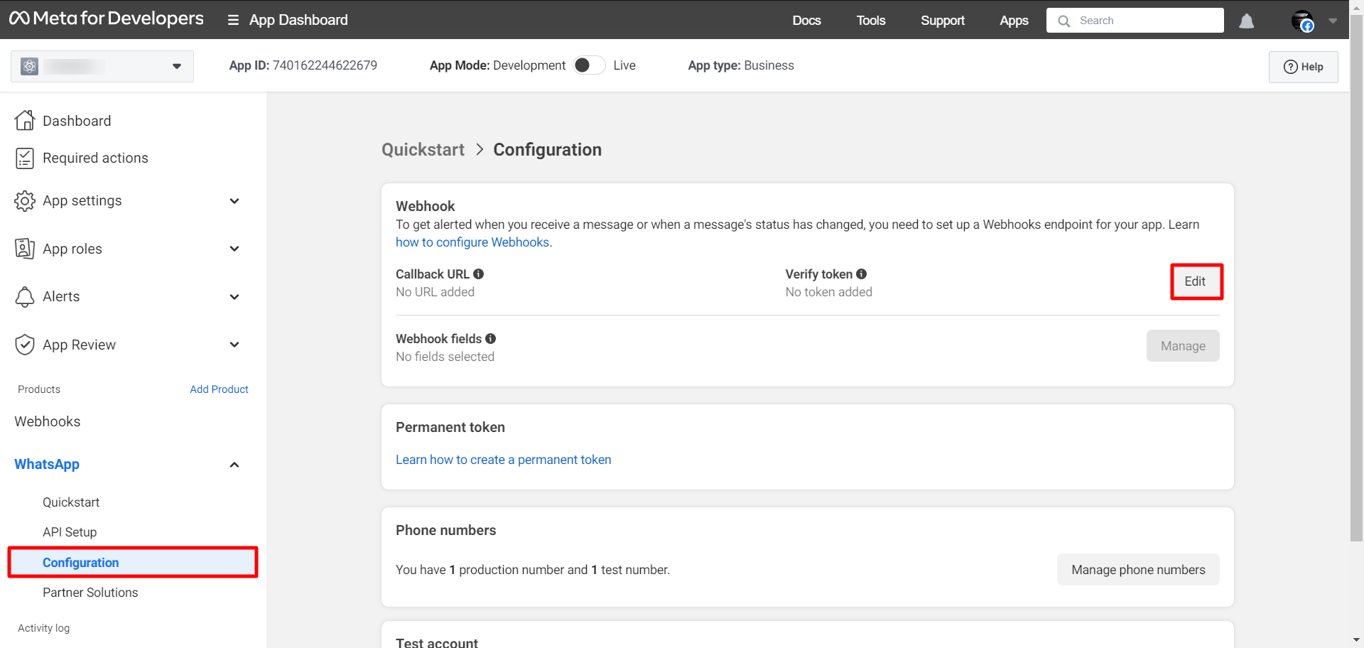 In the webhook section, you will see an edit button. Now click on the edit button.